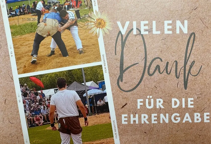 Es ist Tradition, dass sich jeder einzelne Schwinger für seine Ehrengabe bei der Spenderin oder dem Spender schriftlich bedankt. Und nein, nicht nur ein Einzeiler, sondern mit allen Infos zum Schwingfest. Also wie viele Gänge wurden gewonnen, gestellt oder verloren und welcher Platz resultierte am Schluss. Und der Schwinger schreibt weiter: «Am Gabentempel konnte ich mir dank Ihrer Ehrengabe ein wunderschönes, beleuchtetes Bild aussuchen, darüber habe ich mich sehr gefreut. Herzlichen Dank für Ihre Unterstützung des Schwingfests und des Schwingsports.»